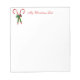 Bloc-notes personnalisable blanc de 5,5 po x 6 po avec une image de deux sucres de canne rouges et blancs croisés attachés avec un joli arc vert et or accentué d'une cloche rouge et d'une cloche verte. Voir la collection complète du Bloc-notes de Noël sous la catégorie BUREAU dans la section VACANCES.