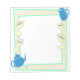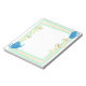 Bloc-notes de 5,5 po x 6 po avec l'image d'un cadre de fête du thé bleu et vert avec une théière et un lanceur bleu blanc et des tasses et soucoupes jaunes. Voir la collection complète du Bloc-notes Wonderland dans les TOUCHES SPÉCIALES | Section Favoris.