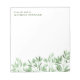 Bloc-notes apaisant avec verdure dans les tons doux de vert pour un thérapeute, psychologue, ou similaire. En haut, à partir du bureau de et votre nom en lettres vertes élégantes. En bas, une rangée de verdure asymétrique dans les tons verts doux pour un look apaisant. Bloc-notes vert personnalisé avec votre nom. Écrivez vos notes, messages et choses à retenir sur ces blocs-notes verts personnalisés.