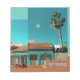 Une photo colorée d'une ville espagnole avec un bâtiment traditionnel, un croissant de lune et un palmier. Valence, Alicante.