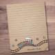 Un bloc-notes illustrant un train en bois souriant qui s'élance le long d'une piste sinueuse. L'arrière - plan est un beige à la texture délicate, chaud et dégradé, avec des détails subtils comme des vêtements en bois et des étoiles dessinées à la main. Si vous préférez l'espace vide, vous pouvez supprimer les lignes.