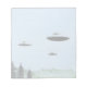 Aquarelle, stylo et encre, dessin au crayon de couleur de trois OVNI soucoupe au-dessus des montagnes.