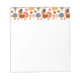 Un bloc-notes avec une bordure motif d'automne saisonnière. Corn, champignons et flore ainsi que petites dindes en casquette pèlerin.