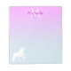 Une mignonne licorne rose sur le rose pastel girly et bleu clair dégradé. Modèle pour votre nom et monogramme, lettres roses pour votre nom et blanc pour votre initiale.