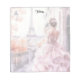 Lady standing near a window looking at the Eiffel Tower. Customizable name.