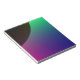 Ce bloc-notes génial présente une image créée numériquement qui ressemble au croissant d'une planète sombre entourée d'une aurore cosmique verte, bleue, violette et rose.