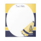 Un superbe bloc-notes pour tout, des notes d'amour à l'écriture d'une liste d'épicerie. Il a une bordure rayée bleue et jaune et un mégaphone en bas qui dit Cheer dessus. Vous customisez le texte en haut.