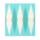 Ce Bloc-notes de Jacquard moderne du milieu du siècle présente un arrière - plan turquoise et dynamique et un motif de diamants turquoises translucides et mod qui recouvrent de grands diamants vintages de couleur or et des taches d'âge spatial. Ce Jacquard minimaliste d'inspiration et déconstruit est un retour simpliste de l'ère atomique plus grande que la vie qui a dominé le paysage décoratif des années 1950 et 1960. Ce design kitsch rappelle tout, des panneaux de bowling rétro Palm Springs aux plateaux de télévision que vous utilisiez chez votre grand-mère.