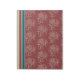 Un élégant Bloc-notes ou Jotter, avec un motif floral formalisé et des bandes de transats en beige et bleu foncé sur un riche arrière - plan bordeaux.