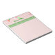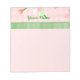 Ce joli bloc-notes est parfait pour toute écriture que vous devez faire. Il est agrémenté d'un arrière - plan rose et d'un design fleuri. Le haut et le bas sont séparés par un graphique d'un ruban vert et blanc. Vous customisez le nom en haut.