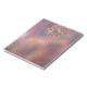 Un design fractal pâle mais coloré comme des nuages d'étoiles dans l'espace ou du marbre multicolore aux tons rose, mauve, pêche et bleu. L'arrière - plan est une texture tachetée comme une nébuleuse lointaine, et la pièce est accentuée par un médaillon de starburst encadré d'or comme si incrusté de figuier d'or. Compléter l'image sont des bijoux lisses à l'opale et des pierres précieuses facettées inset dans un fleuron doré.