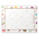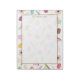 Un bloc-notes avec une impression de tasses à thé, de macarons français et de fleurs d'anémones avec un texte "Bonjour".