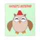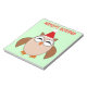 Ce formidable bloc-notes présente un dessin amusant d'une chouette de Noël aux yeux somnolents, un petit bec orange et de mignons petits pieds oranges. Le hibou est brun avec un ventre crème et porte un chapeau de Père Noël rouge et blanc prêt pour Noël. Il y a du texte personnalisable en haut du bloc-notes qui vous permet de le personnaliser pour vous-même ou de le transformer en un joli cadeau pour un autre.