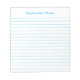 Bloc-notes personnalisé Sky Blue Moderne Ces blocs-notes personnalisables sont simples pour un usage quotidien ou pour envoyer une note formelle à quelqu'un de votre bureau ou bureau à domicile. Vous pouvez également choisir une variété de couleurs dans notre boutique pour vos besoins de bureau à domicile. Personnalisez ces blocs-notes avec votre nom ou donnez comme cadeau et personnaliser avec vos amis ou les noms de famille afin qu'ils puissent les utiliser à leur domicile ou au bureau.