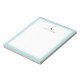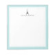 Ajoutez une touche parisienne à votre bureau ! Simple et chic, notre bloc-notes personnalisées vous propose votre nom ou monogramme surmonté d'une petite illustration en noir de la silhouette de la tour Eiffel dessinée à la main, encadrée d'une bordure pastel vert mer.