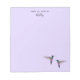 Bloc-notes personnalisé avec deux Hummingbirds Starfrontlet à gorge bleue sur un arrière - plan violet pâle. Vous pouvez modifier le style, la taille et la couleur de la police en cliquant sur "customiser plus loin".