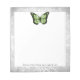 Ajoutez des notes et des rappels avec un Bloc-notes vert brillant personnalisé. Le design du Bloc-notes comprend un papillon brillant orné d'une vigne de feuillage contre un arrière - plan gris grunge et de l'espace à personnaliser avec votre nom. Autres articles de papeterie correspondants disponibles avec cette conception aussi. Si vous avez besoin d'aide pour la personnalisation, veuillez me contacter directement.