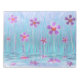 Dessin numérique de jolies fleurs violettes stylisées aux centres rouges brillants. Ils vous regardent tranquillement depuis la haute herbe à côté d'une piscine d'eau claire qui ondule.