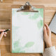 Bloc-notes personnalisé avec design botanique feuille vert sur papier de haute qualité. Comprend 40 pages détachées avec support en carton pour une écriture robuste.