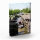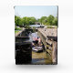 Un dessin photographique d'un canot étroit qui vient d'entrer dans l'écluse et d'attendre la fermeture des portes d'écluse.