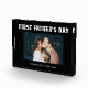 Ce bloc photo moderne en Fête des pères noire et blanche pour la première fois papa dispose d'un simple arrière - plan noir foncé avec une typographie de script blanc masculin qui dit "Première Fête des pères." Ajoutez une photo de lui et du bébé, avec une pièce à personnaliser avec les noms et l'année.