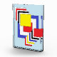 Cette oeuvre géométrique abstraite de Richard H. Fay présente un tableau de carrés dans les couleurs primaires du rouge, du bleu et du jaune, ainsi que du noir et du blanc.