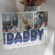 Bloc photo père moderne avec 3 précieuses photos de famille à remplacer par le vôtre, le titre "DADDY" dans une police d'ombre bleue en gras, et les noms des enfants.