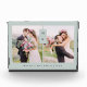Ce bloc photo élégant et moderne comprend deux de vos photos personnelles, avec vos monogrammes et une tache pour vos noms sur un arrière - plan doux et vert clair.