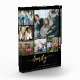Élégant script de calligraphie de famille moderne écrit à la main avec six photos personnalisées noir gardien d'or photo modèle bloc photo. +++++++++++++++ Veuillez noter que la couleur arrière - plan est modifiable. Vous pouvez remplacer le noir par n'importe quelle autre couleur après avoir sélectionné l'option PERSONNALISER.