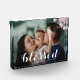 Ce charmant bloc photo comprend le mot BLESSED dans un magnifique script blanc et toute autre information que vous voulez inclure. Créez pour des cadeaux de famille ou pour vous-même.