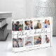 Un collage photo spécial et mémorable cadeau pour père et fille. Le design comporte une mise en page de huit photos collage pour afficher huit de vos propres photos père et fille spéciales. "Père fille" est conçu dans un script de pinceau noir élégant et de calligraphie de conception cardiaque et customisé avec les noms de père et de fille. Envoyez un cadeau mémorable et spécial à vous et à votre père que vous chérirez pour toujours. Remarque : les couleurs peuvent être modifiées selon vos préférences.
