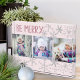 Ce bloc photo de vacances est configuré pour vous pour ajouter 3 de vos photos préférées. Le texte écrit à la main indique "Soyez joyeux" et vous pouvez également ajouter votre texte personnalisé au bas. Le bloc photo est rose pastel et décoré de doux flocons gris argenté. Parcourez notre magasin pour coordonner les produits de Noël et les couleurs alternatives.