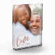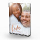 Un souvenir de mariage personnalisé avec un faux feuillet de cuivre à la mode "amour" dans un élégant script de calligraphie et la date du mariage dans le coin avec un look industriel romantique.