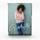Cette tenue de fin d'études élégante et tendance présente une photo du diplômé du collège ou du lycée. Un script blanc décontracté et moderne apparaît sur une superposition avec leur photo.