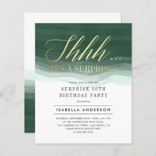 Budget Gold & Blue Watercolor Überraschung Geburts