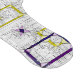 Dieses abstrakte Stück verfügt über ein sorgfältig arrangiertes Gitter von ineinander greifenden Quadraten, die in lebhaftem Gelb und tiefem lila dargestellt sind. Die geometrischen Formen überlagern ein leicht detailliertes technisches Konzept und schaffen einen Kontrast zwischen Präzision und Zufälligkeit. Die Wiederholung und Symmetrie der Quadrate ruft ein Ordnungsgefühl hervor, während die unterschiedlichen Stärken und Winkel subtile Abweichungen nahe legen, die jedes Quadrat einzigartig machen. Der Gesamteffekt ist ein dynamisches Zusammenspiel von Struktur und Fluidität, das den Betrachter einlädt, das Gleichgewicht zwischen Gleichmäßigkeit und Komplexität zu erforschen.