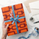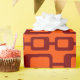 Dieses Umhüllungspapier hat ein modernes Design von abgerundeten Rechtecken, die auf einem orangefarbenen Feld miteinander verbunden sind.