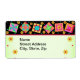 Amateurs de courtepointes - criez des courtepointes ou des affaires de tissu avec ce étiquette d'expédition attaché à votre courrier montrant des blocs de courtepointes sur un arrière - plan noir avec une zone d'adresse vert clair et fleurie. Entièrement personnalisable. Art de la courtepointe original créé dans des couleurs dynamiques et dynamiques.