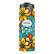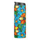 This thermal tumbler features a vibrant floral pattern bursting with color—sunny yellows, warm oranges, deep reds, and refreshing blues set against a rich blue background. The tall, sleek silhouette enhances the artwork, giving the design a bold, modern look that feels energetic and uplifting. At the center, an elegant oval label with the word BLOOM adds a touch of inspiration, celebrating growth, positivity, and everyday joy. With double‑wall insulation, this tumbler keeps drinks hot or cold for hours, making it perfect for travel, work, or daily routines on the go.