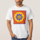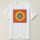 Eine lebendige Blume mit Blütenblättern in Orange, Rot Orange, Kobaltblau, Hellblau, Grün und Gelb.