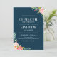 Invitation de mariage élégante et stylée avec des roses peintes à l'aquarelle sur fond bleu marine. Vous pouvez personnaliser le fond avec la couleur de votre choix. Choisissez une forme découpée ou un papier texturé pour un effet luxueux supplémentaire. Mélangez et associez les éléments de cette collection pour un ensemble d'invitations harmonieux et élégant.