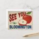 Eine bezaubernde Bloomington Minnesota Vintage Reise-Postkarte mit einem schönen roten Apfel, zusammen mit lustigen Retro-Text, der sagt: "See you in Bloomington"