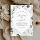 Weiße Rose mit Blumen und Eukalyptus Botanische Vegetation Watercolor Hochzeitsfrühling oder Sommerhochzeiten Einladungen - inkludiert schöne und elegante Schrift-Typografie mit modernen tropischen botanischen Blume und Grün für die besondere Hochzeitsfeier.