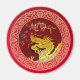 Traditioneller chinesischer Stil mit verziertem Rundrahmen für goldenes Drachenpapier und Blüte + Original-Handschrift "Jahr des Drachen" und "2024". Gestaltung auf Rundaufkleber. Passend Gruß, Postkarte, Aufkleber. Perfekt für das chinesische Neujahr des Drachen 2024.