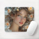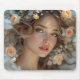 Richten Sie Ihren Arbeitsbereich mit diesem Mauspad auf, das die Rose Seraph zeigt, einen ruhigen Engel, gekrönt von pfirsichfarbenen Rose, der Ruhe und Schönheit inspiriere.