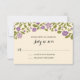 DE LA COLLECTION MARIAGE FLEUR SAUVAGE BLOSSOMS : Pour votre Mariage RSVP / Carte de réponse - Fleurs Whimsical en couleurs de Chartreuse Vert et Violet antique avec un ensemble arrière - plan vintage jaune. Si le jeu de couleurs n'est pas ce que vous vouliez, envoyez un courriel à paula@labellarue.com avant de passer une commande. Assurez-vous de prouver votre design avant de soumettre votre commande. Si vous avez des questions concernant la conception, veuillez me le faire savoir et je serai heureux de vous aider. Merci! Assurez-vous de choisir votre carte préférée pour l'imprimer.