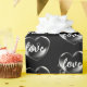 Herzförmige Blase mit weißem Liebe-Text und winzigen Blasen auf schwarzem Hintergrund für Hochzeit oder Jubiläum. Die Hintergrundfarbe kann geändert werden.