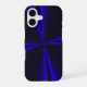 This iPhone 16 phone case features a blue accented geometric clover leaf theme and iPhone model case change options.