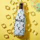 Diese Flasche cooler hat ein modernes Design von wiederholenden Crescents in vier Blautönen und cremefarben. Wie dieses Design, aber wollte verschiedene Farben? Nachricht.