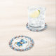 Blue and brown yarn crocheted teddy bear. it's a boy baby shower paper coasters. Adorable trendy theme for a sweet boy's baby shower.